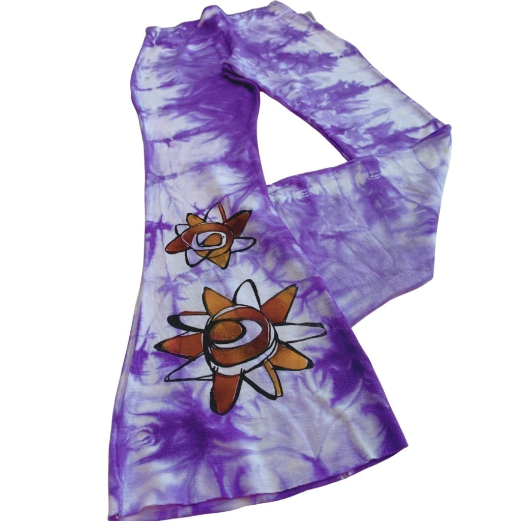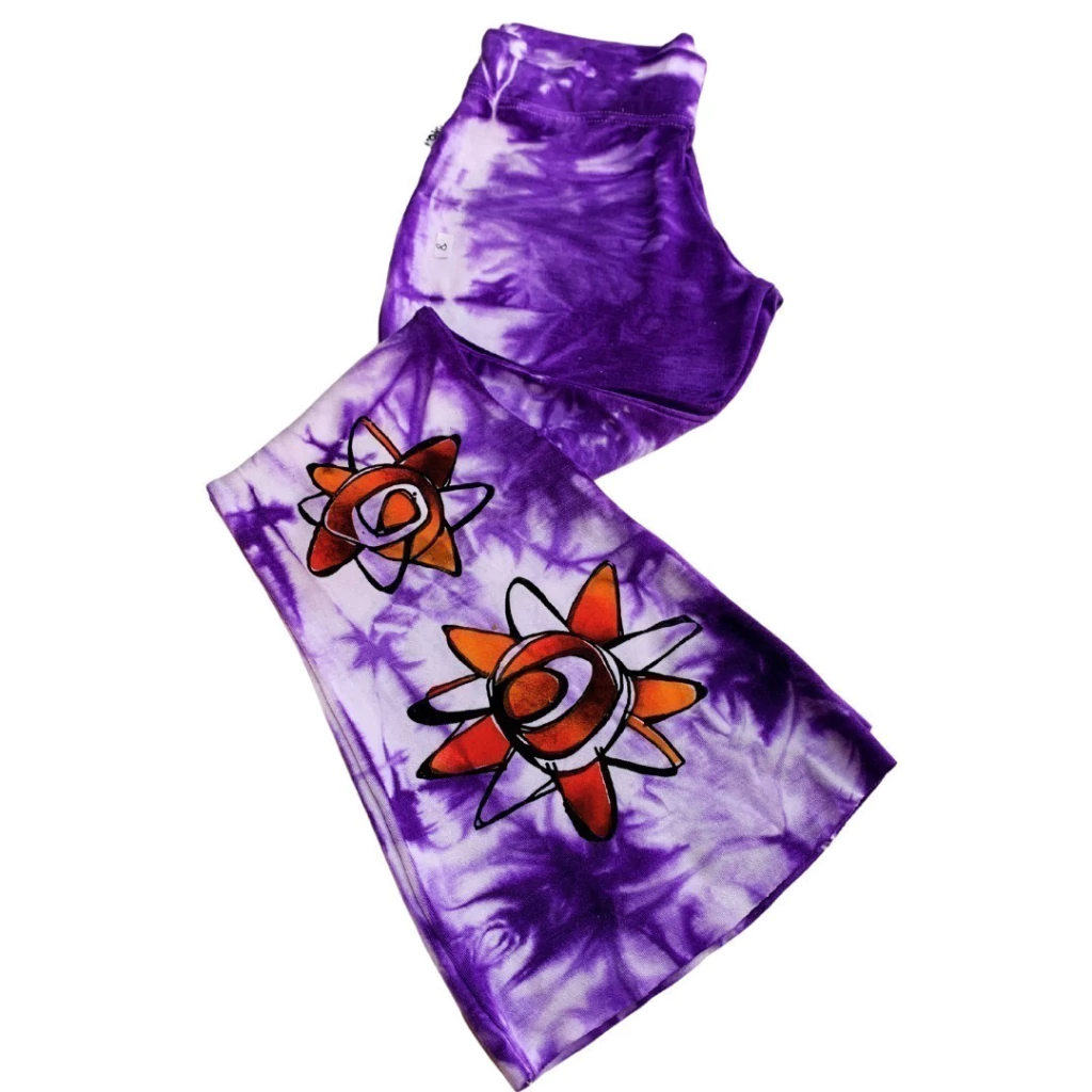 Estampada con serigrafia y pintada a mano con stencil.,en los casos de batik tambien estan teñidas artesanalmente.