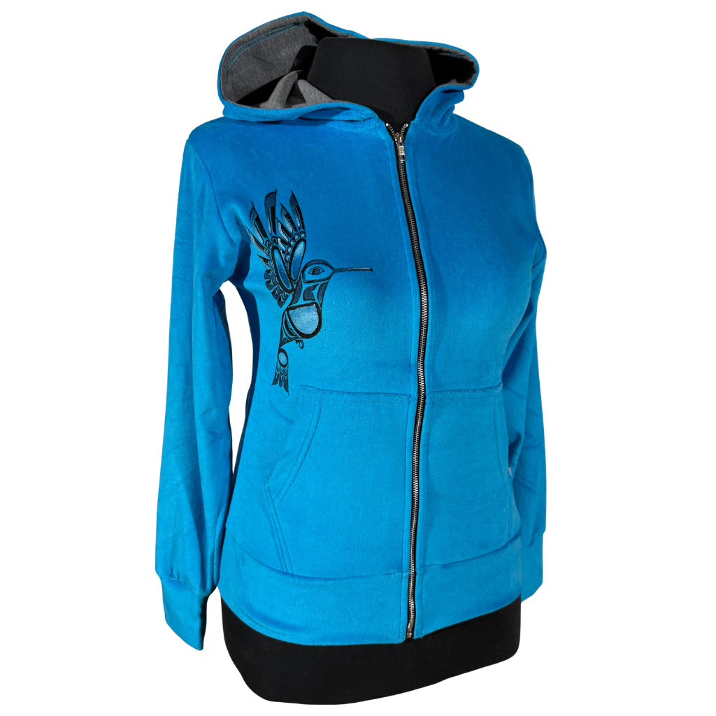 Campera con capucha y bolsillos tipo canguro.