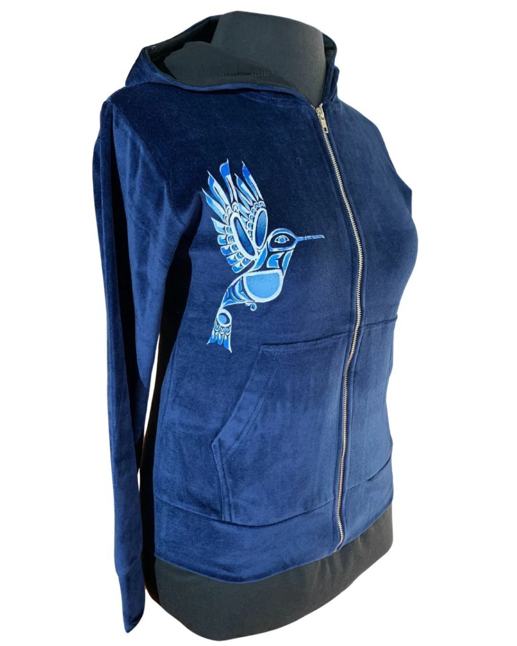 Campera con capucha y bolsillos tipo canguro.