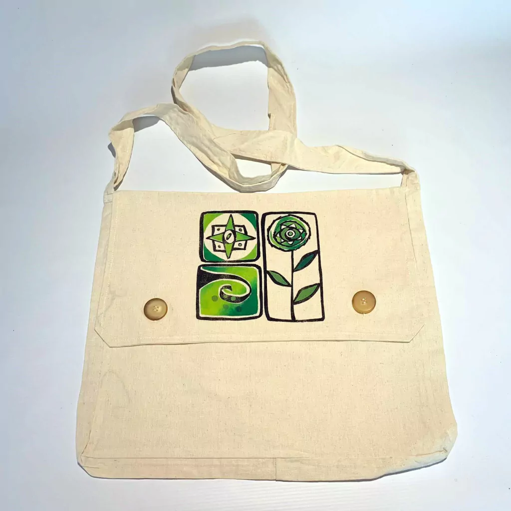 Cartera de lienzo pintada a mano y en los casos de batik también están teñidas a mano.