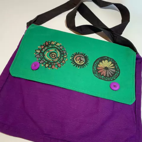 Cartera de lienzo pintada a mano y en los casos de batik también están teñidas a mano.