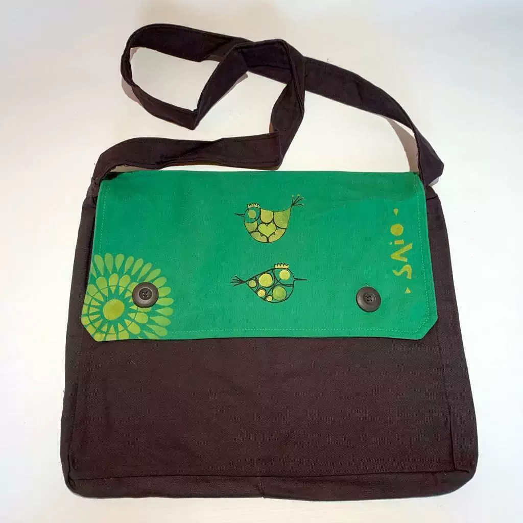 Cartera de lienzo pintada a mano y en los casos de batik también están teñidas a mano.