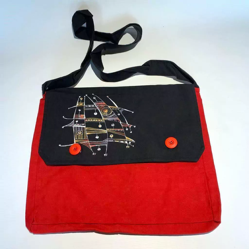 Cartera de lienzo pintada a mano y en los casos de batik también están teñidas a mano.
