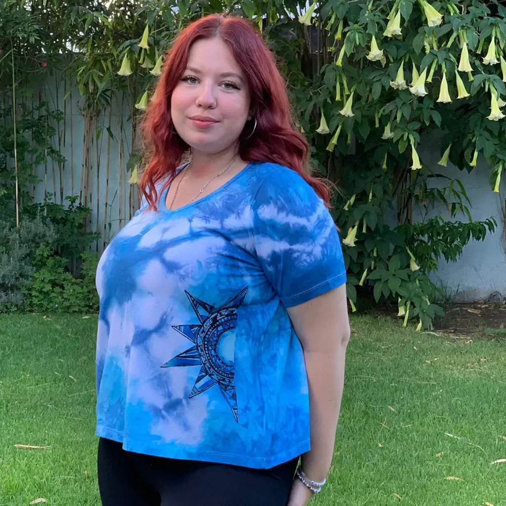 Tiene spandex asi que cede bastante la tela y se adapta re bien, la modelo tiene puesto un talle 2 con 110 de busto.