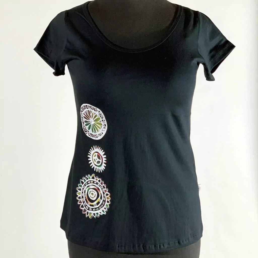 Remera 100% algodón estampada a mano con serigrafia y pintada con stencil.