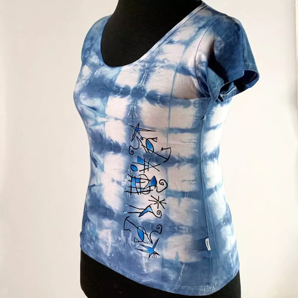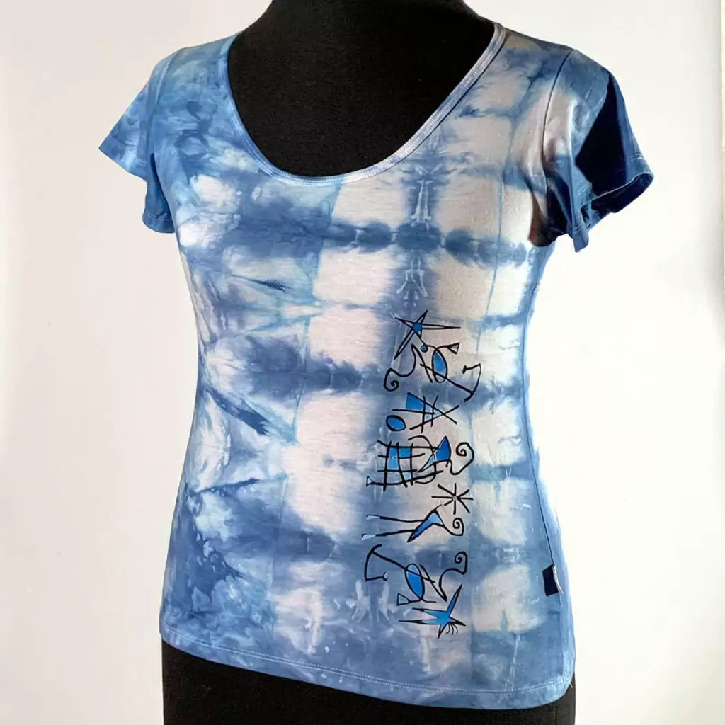 Remera 100% algodón estampada a mano con serigrafía y pintada con stencil.
