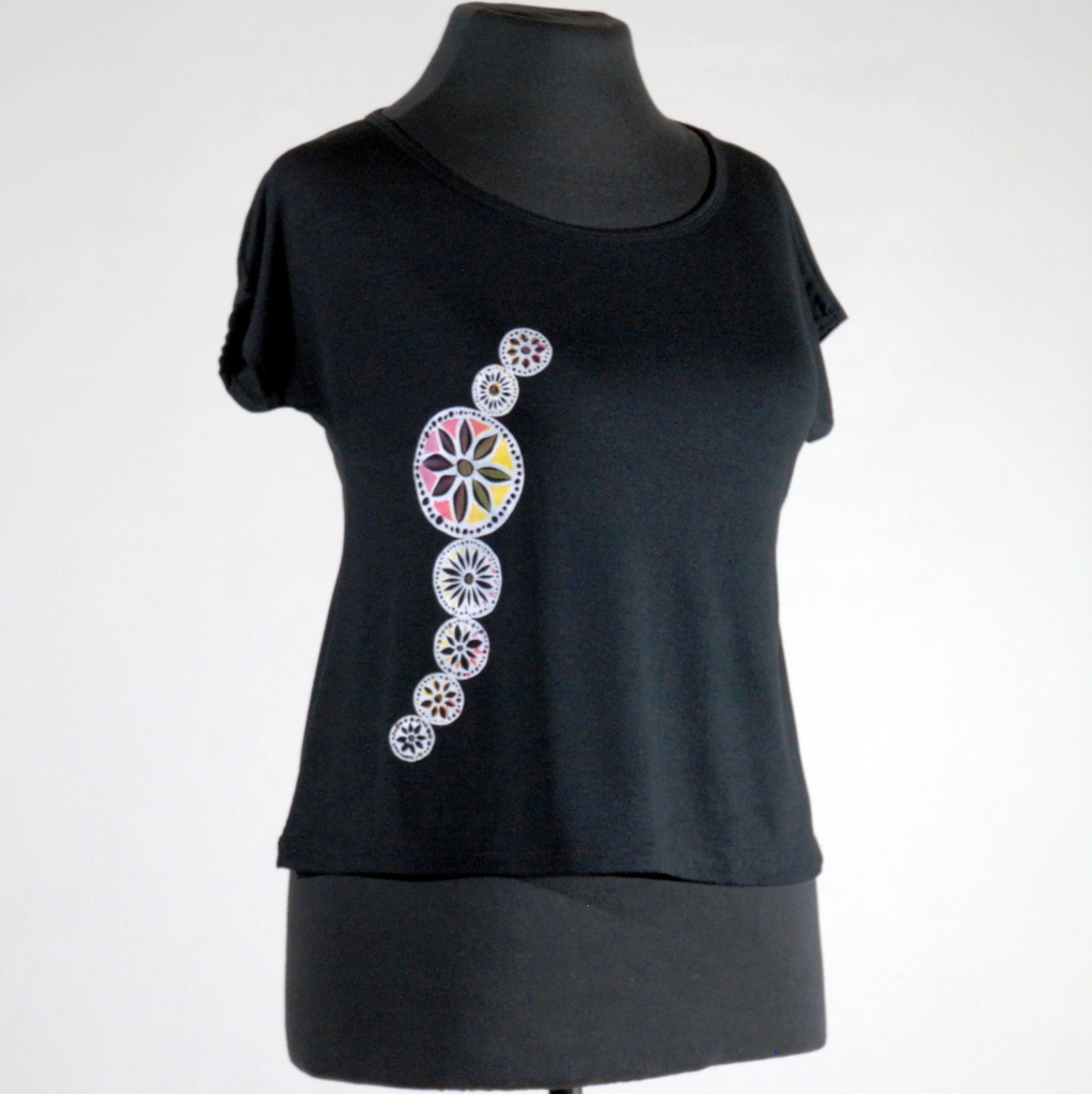 Remera de modal pintada a mano y en los casos de batik también están teñidas a mano.