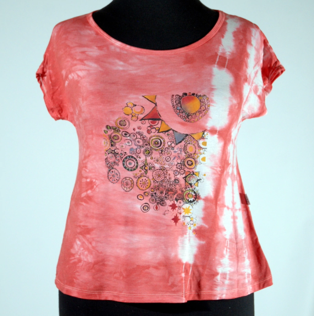 Remera de modal pintada a mano y en los casos de batik también están teñidas a mano.