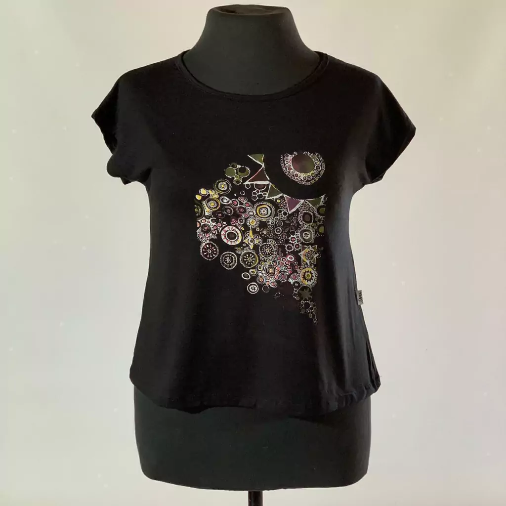 Remera de modal pintada a mano y en los casos de batik también están teñidas a mano.