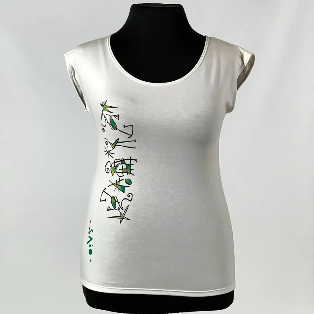 Remera de modal con lycra. Pintada a mano y en los casos de batik también esta teñida a mano.