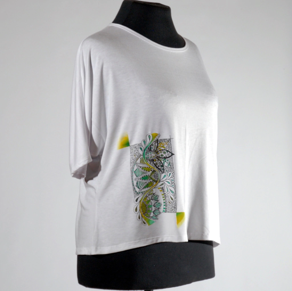 Remera de modal teñida y pintada a mano.