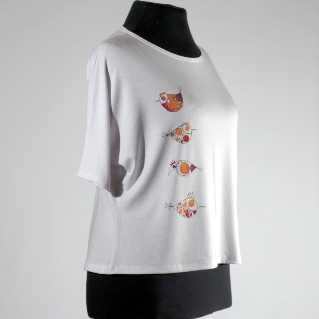 Remera de modal teñida y pintada a mano.