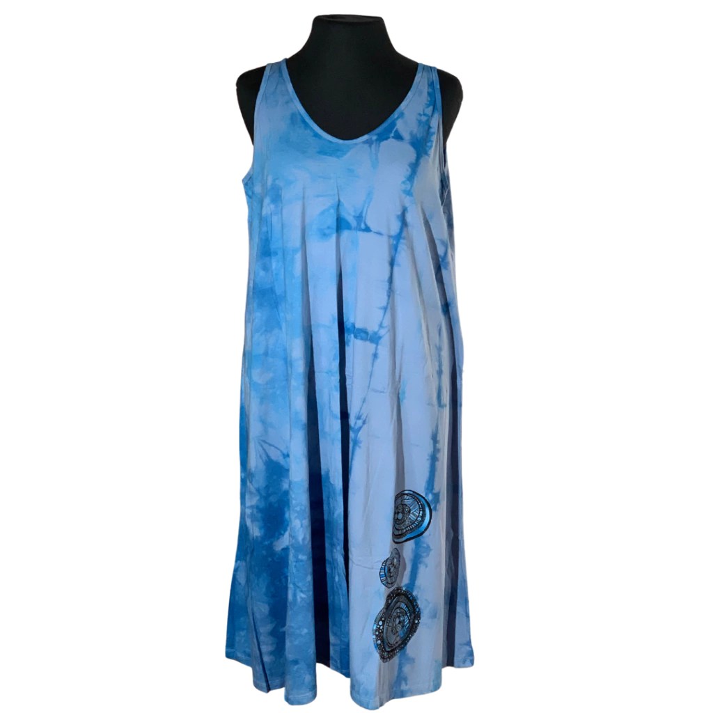 Vestido super amplio de algodón escote V adelante y atras.