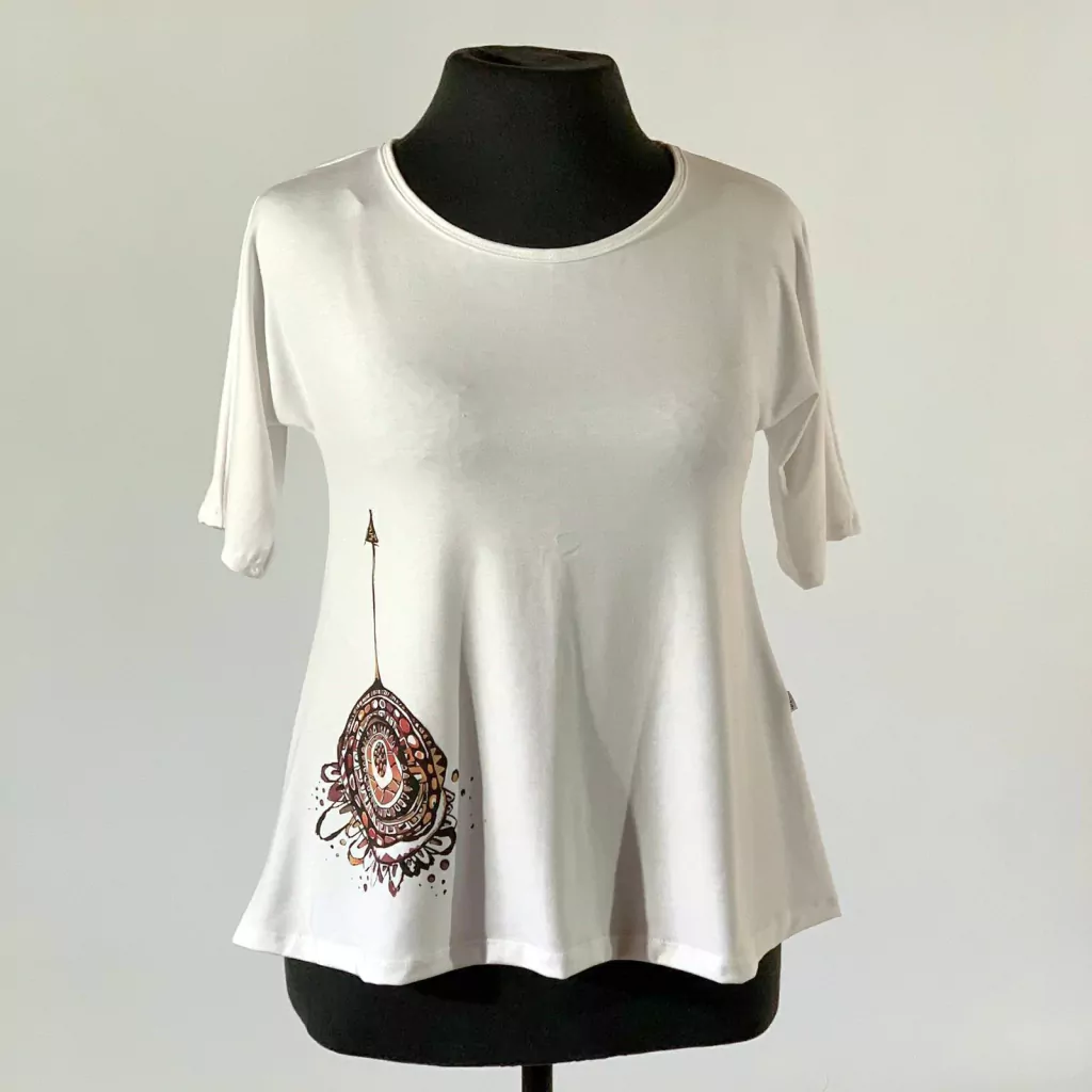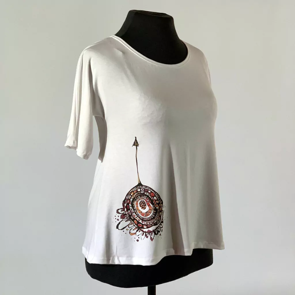 Estan estampados con serigrafia y pintados a mano con stencil y en algunos casos teñidas con batik.