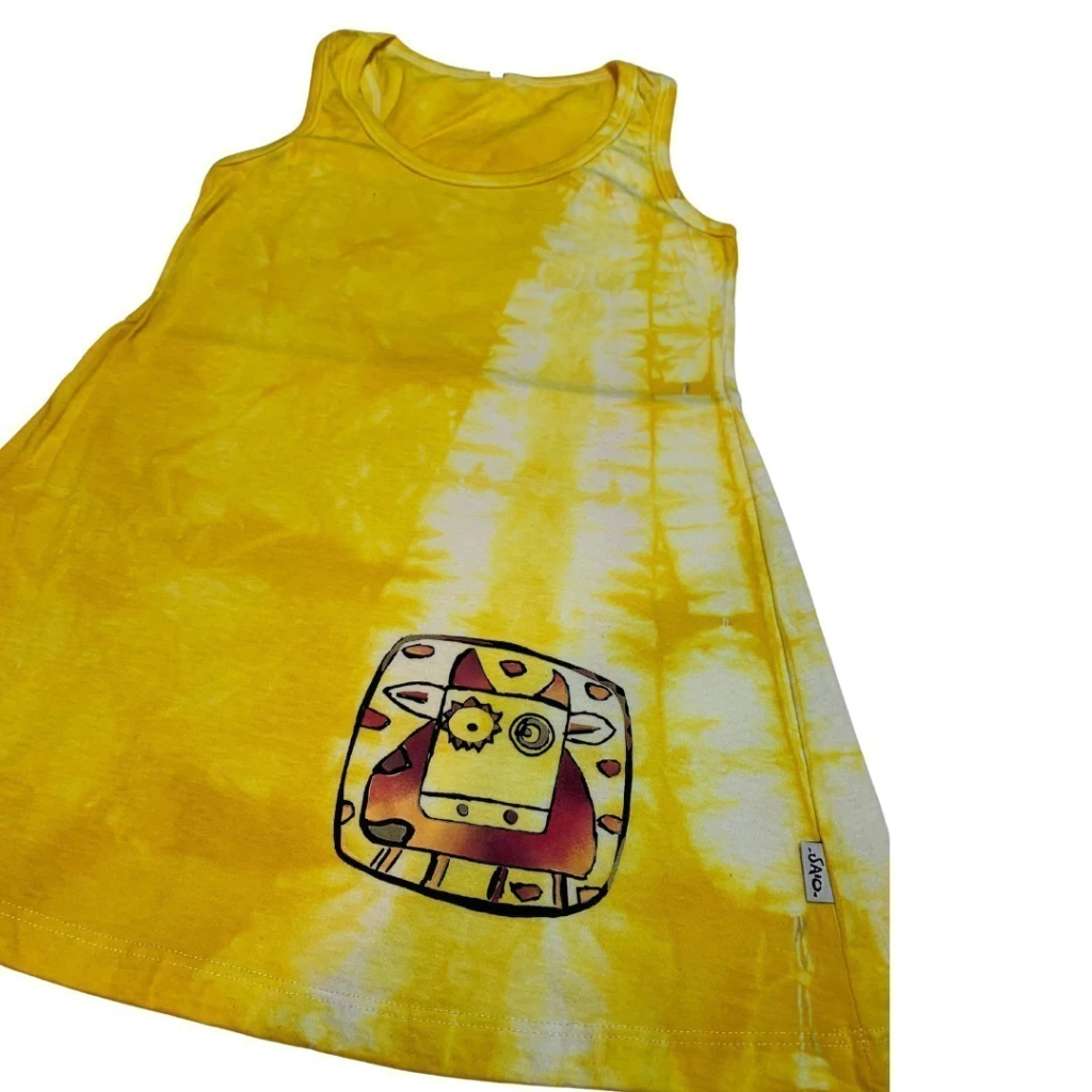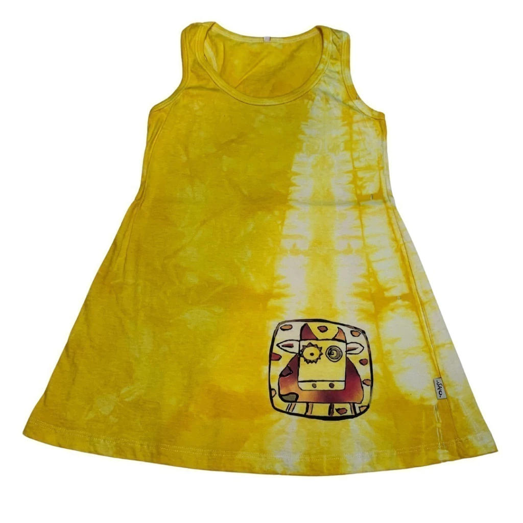 Vestido de algodón pintado y teñido a mano.