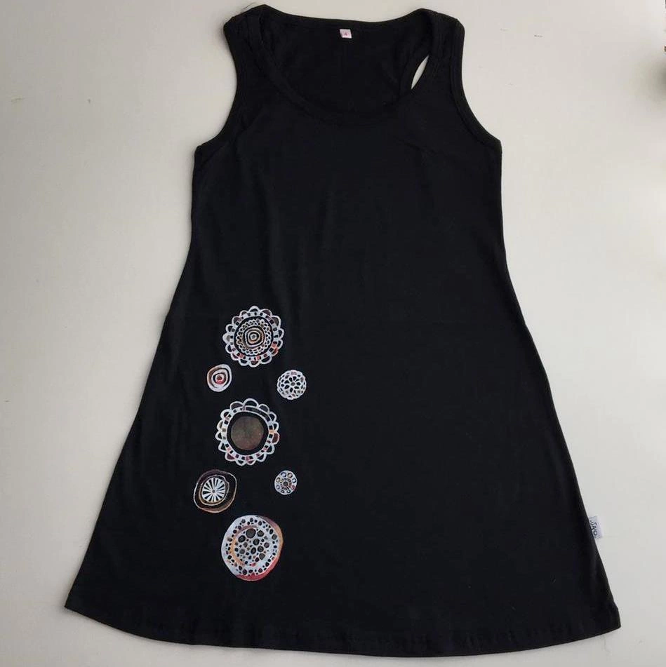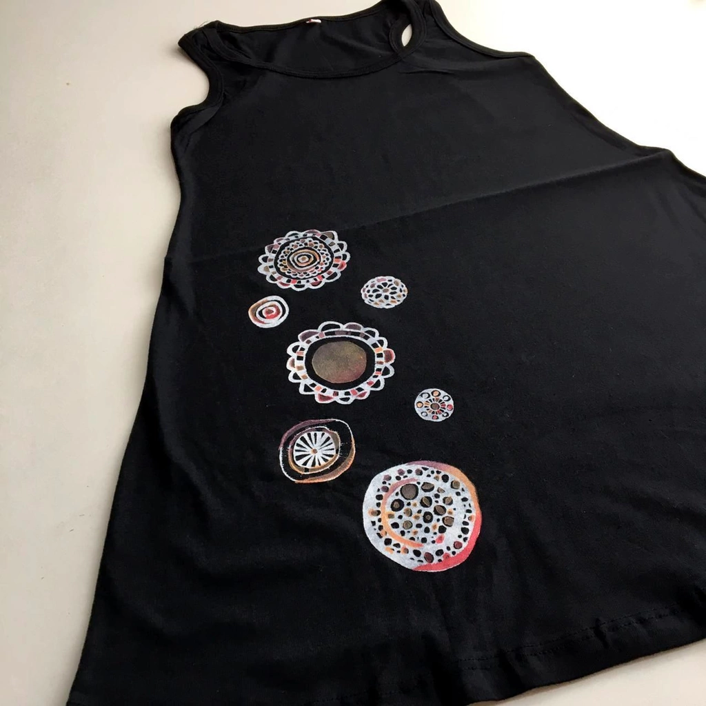 Vestido de algodón pintado y teñido a mano.