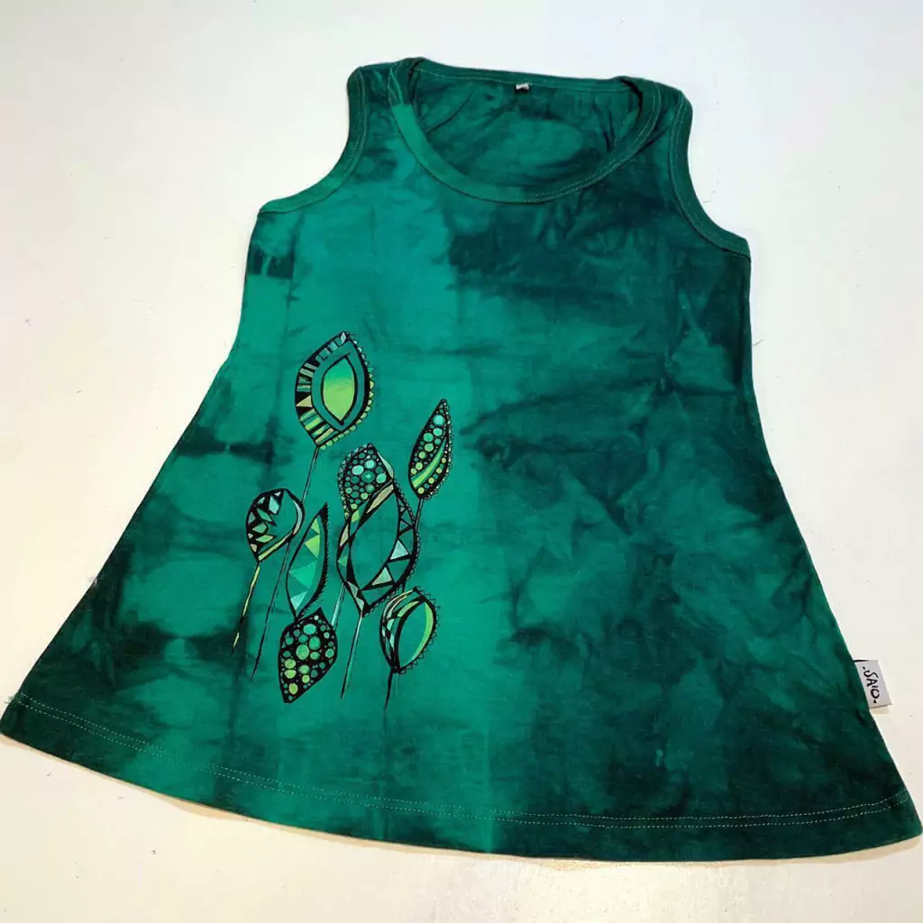 Vestido de algodón pintado y teñido a mano.