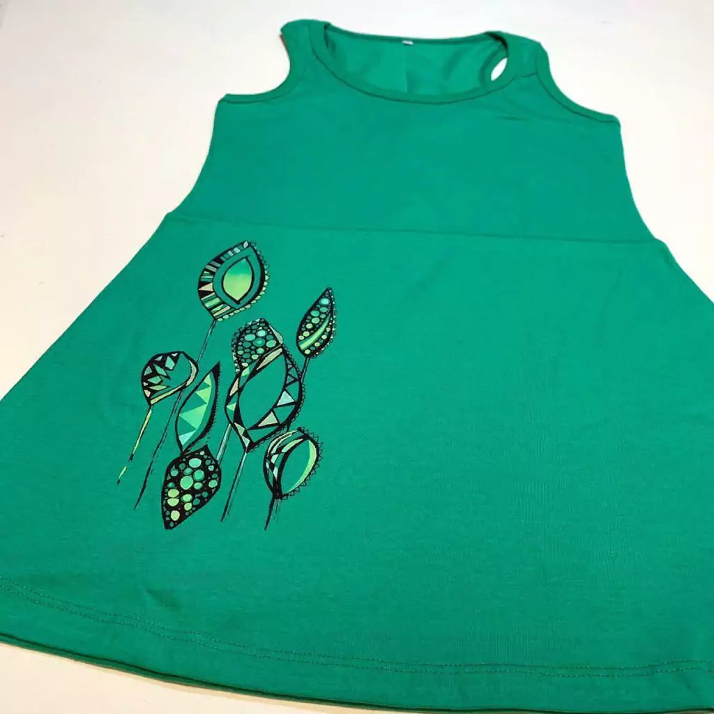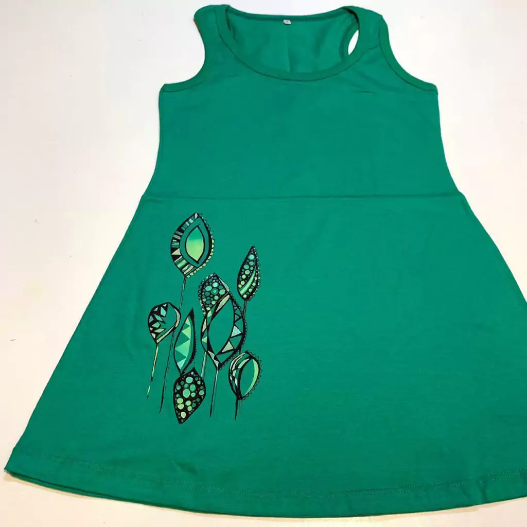 Vestido de algodón pintado y teñido a mano.