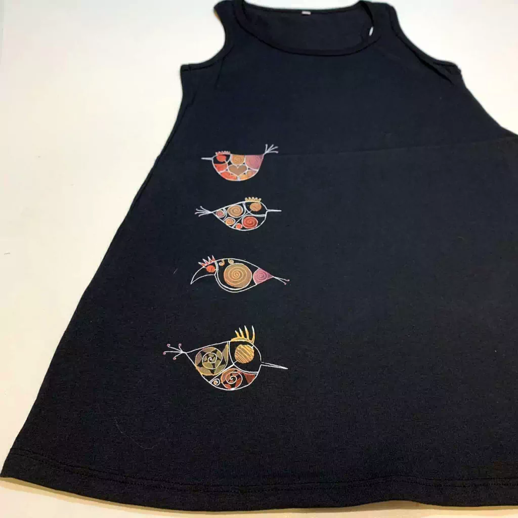 Vestido de algodón pintado y teñido a mano.