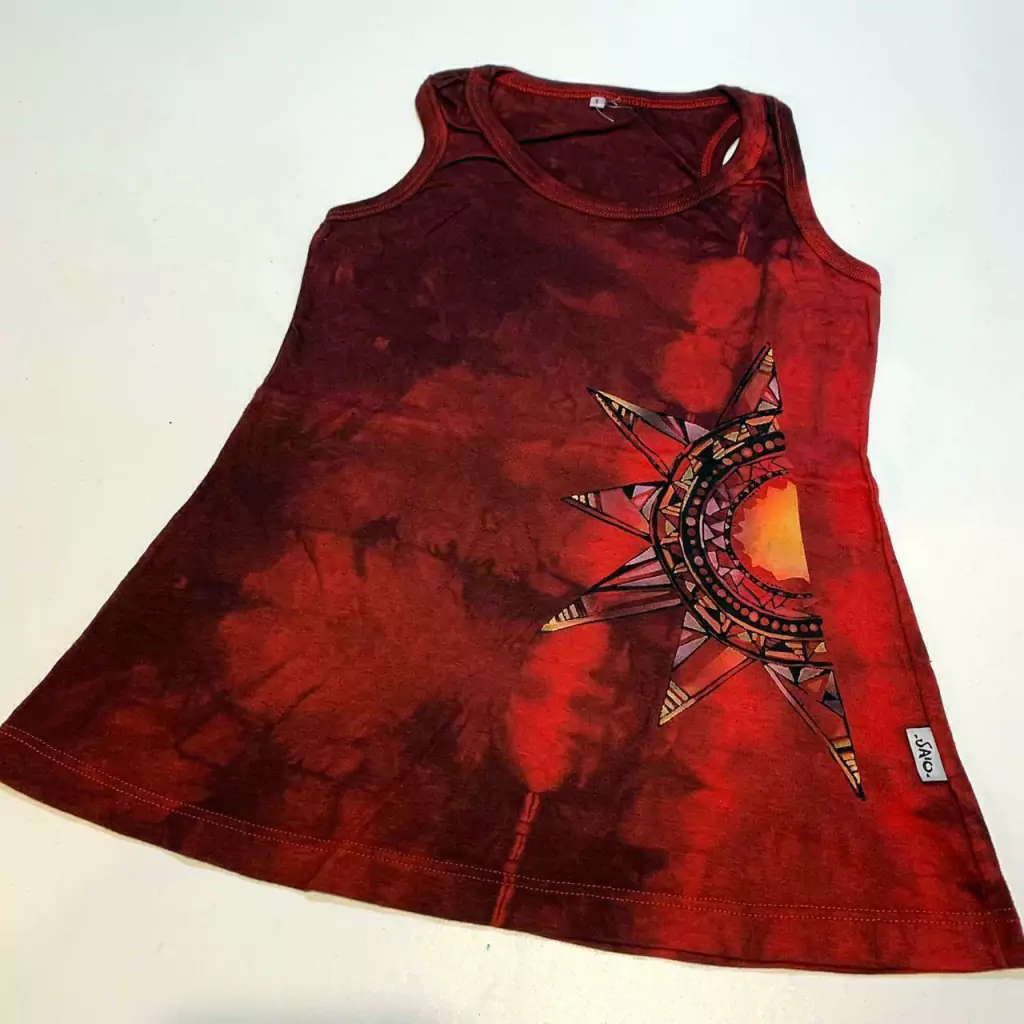 Vestido de algodón pintado y teñido a mano.